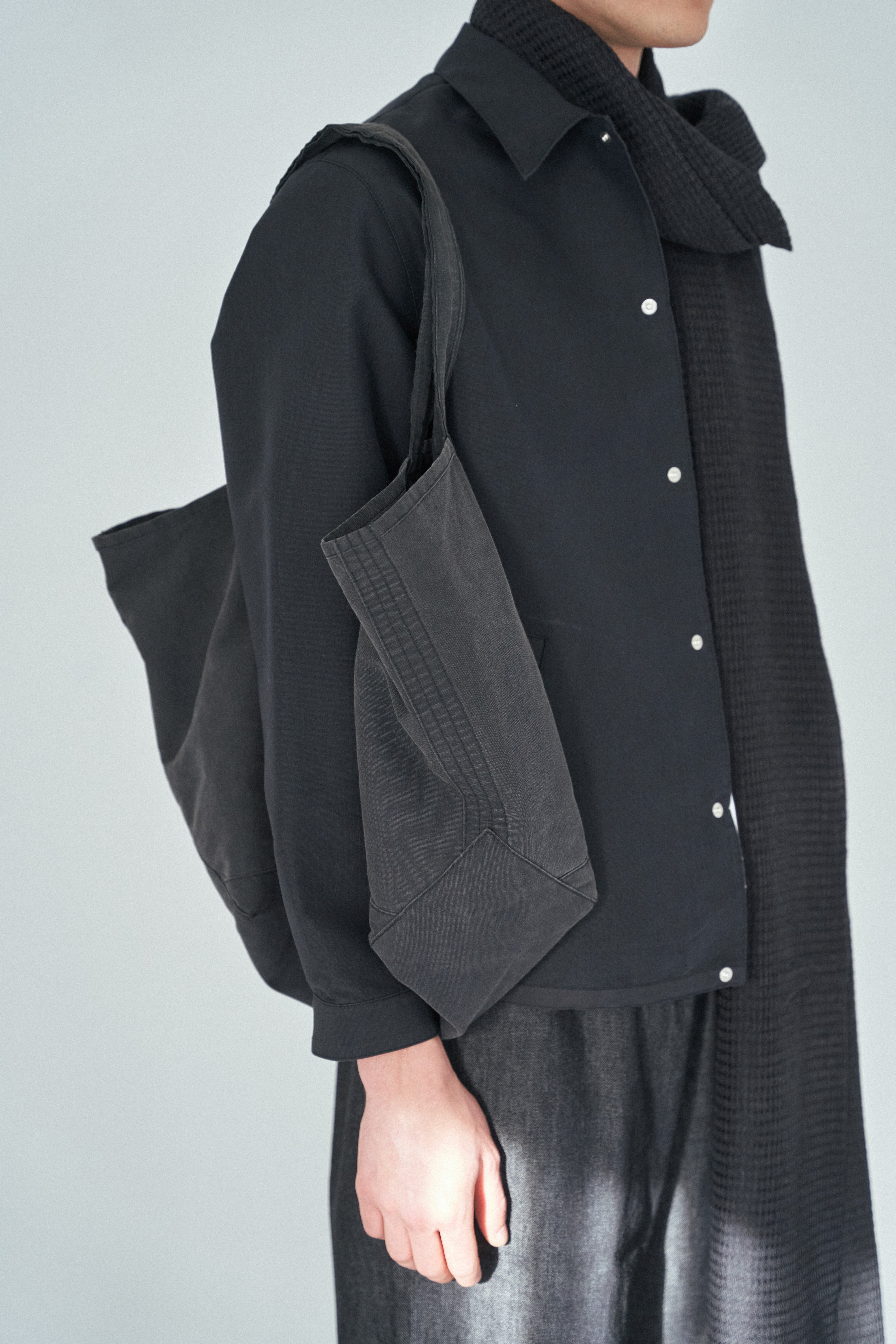 生地の状態でウォッシュして、ノリ抜きを施しインディゴ・ブラックの2色に展開した